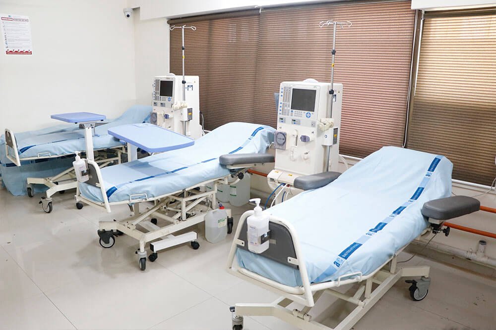 Kidneys filter our blood by removing waste and excess fluid from our body. This waste is sent to the urinary bladder to be eliminated while urination. Dialysis performs the function of kidneys if they have failed. End stage kidney failure occurs when the kidneys are performing only 10 to 15% of the normal functionality. Dialysis is a treatment that filters and purifies the blood using a machine. This helps to keep your fluid and electrolytes in balance when the kidneys can not do their job. Narayan Swaroop Hospital has 3 dialysis units. Dialysis is performed through AV fistulas or temporary access for dialysis.